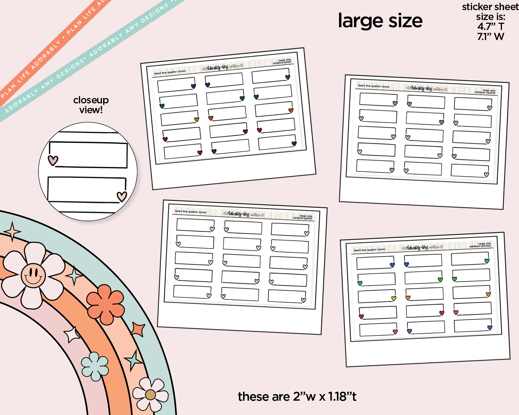 Rainbow Doodled Heart Line Quarter Boxes Large/Jumbo Size Stickers