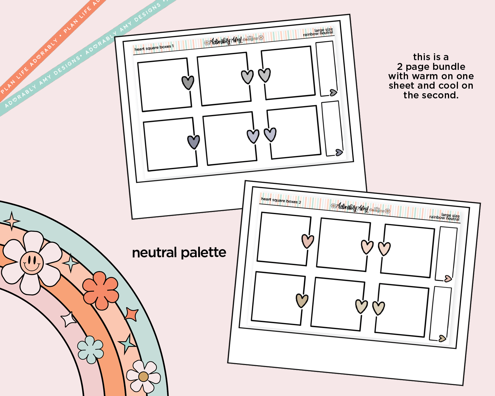 These heart line square box stickers are a simple, functional essential with a sweet twist. Featuring clean square boxes accented with tiny heart details, they’re perfect for keeping your planner organized while still adding a pop of charm to your weekly layouts.