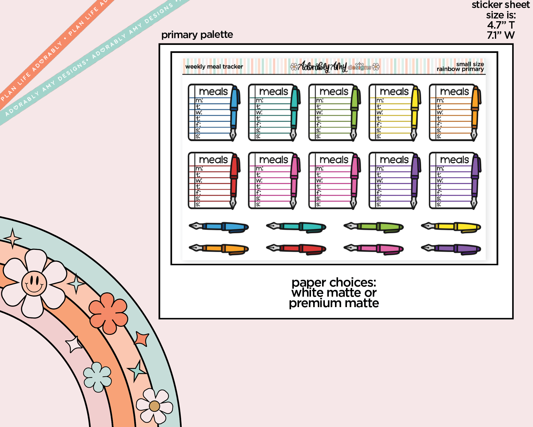 Rainbow Doodled Weekly Meal Tracker Small Size Planner Stickers