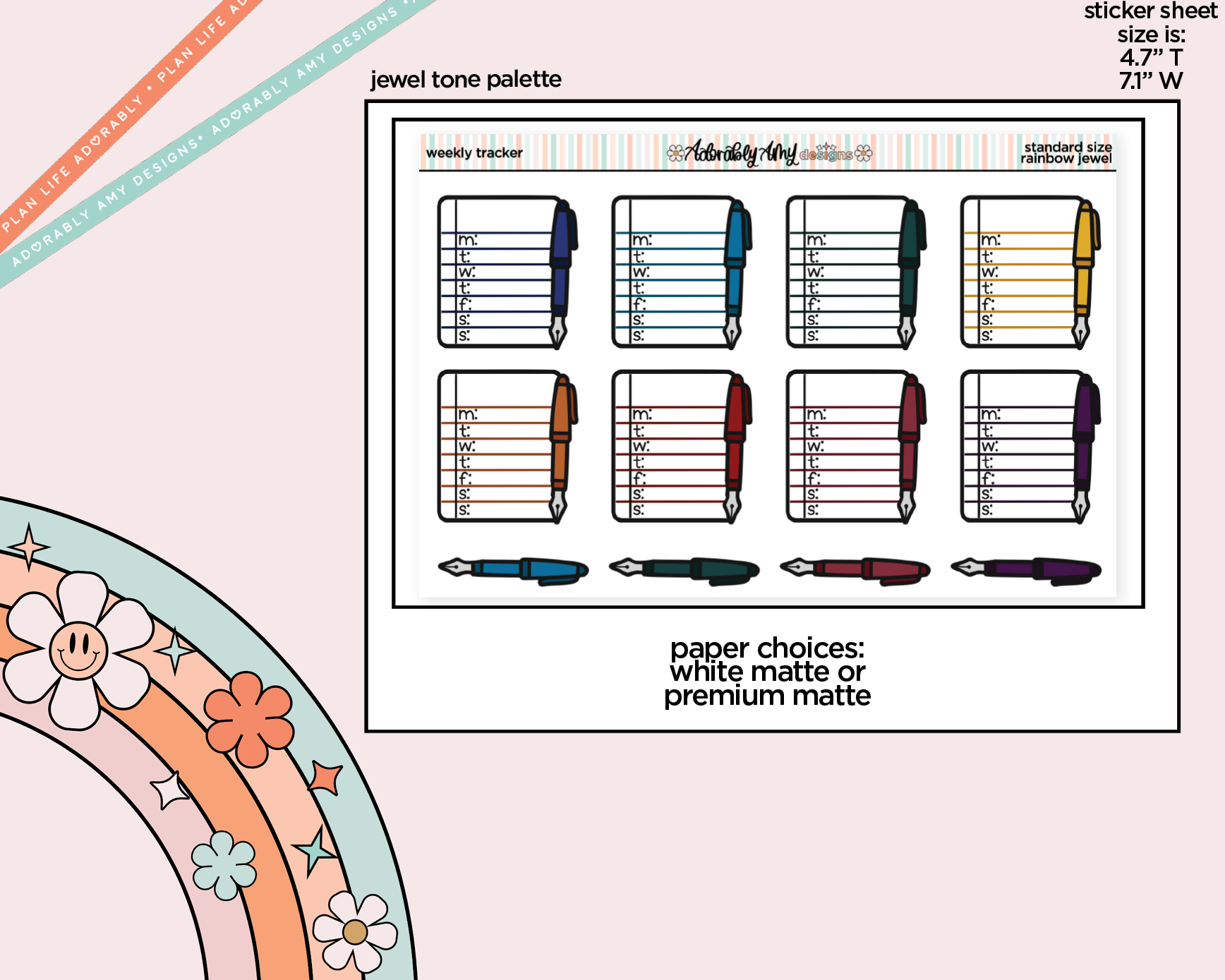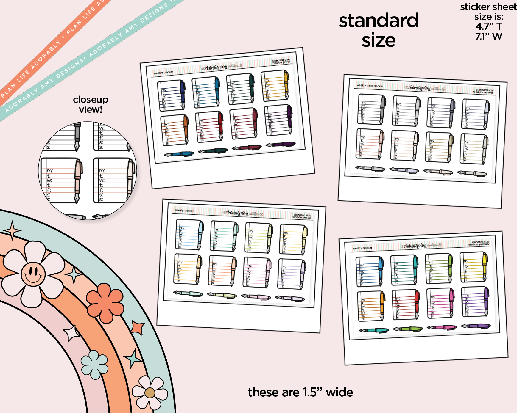 Rainbow Doodled Weekly Tracker Small Size Planner Stickers