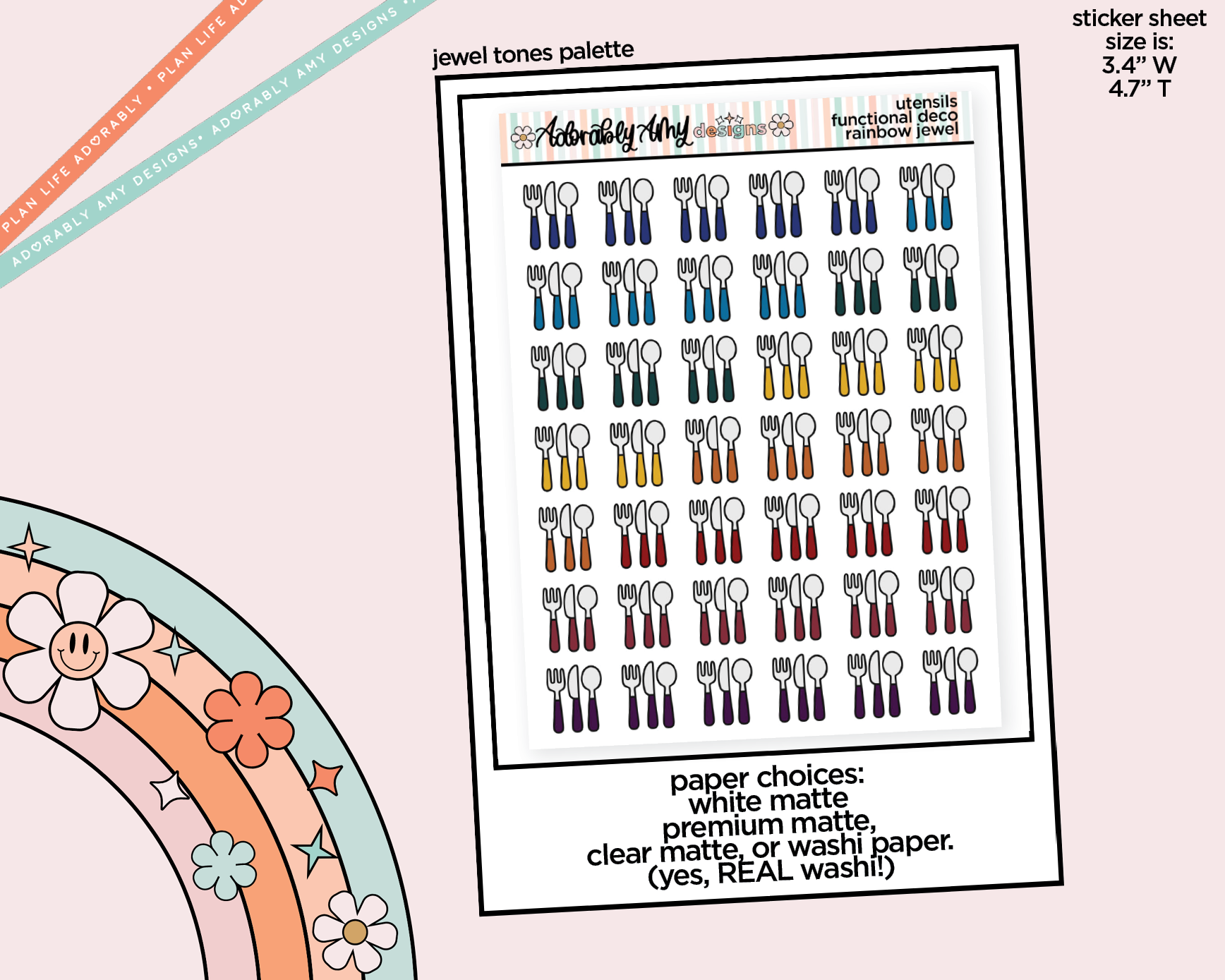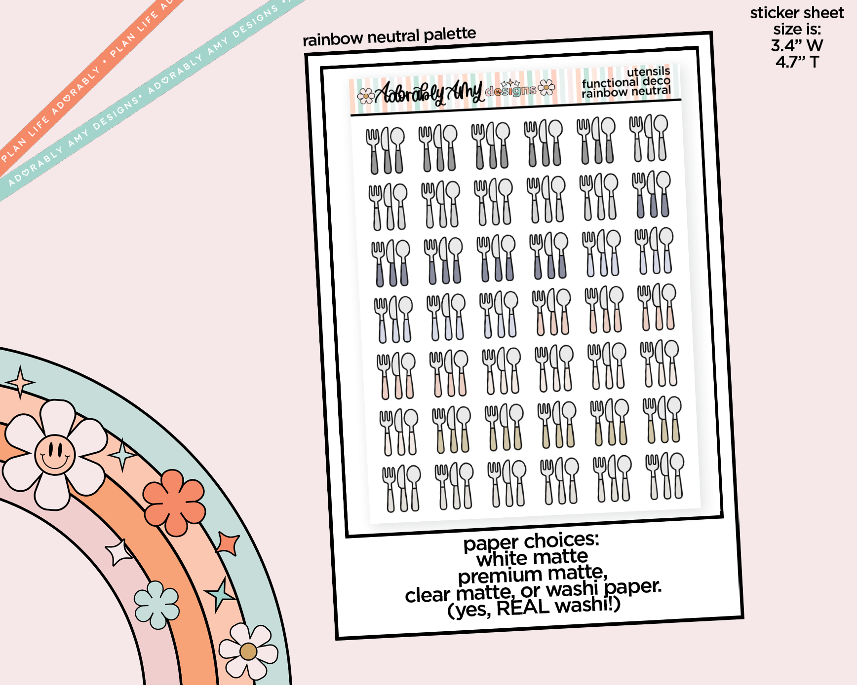 There are four papers available for this sheet. Our normal high quality bright white sticker paper or the super thin and soft Premium Matte Thin paper. This paper is PERFECT for the Hobo Cousin because the paper is so thin and flexible so obviously I recommend that one, though it does have a small upcharge. It is also available on clear matte paper OR super thin Washi Paper, yes REAL washi paper! Washi paper is NOT repositionable once you stick it down all the way!!