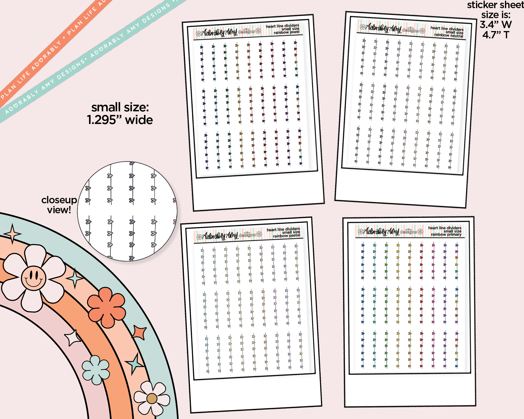 Rainbow Heart Line Dividers Small Size Planner Stickers for Any Planner