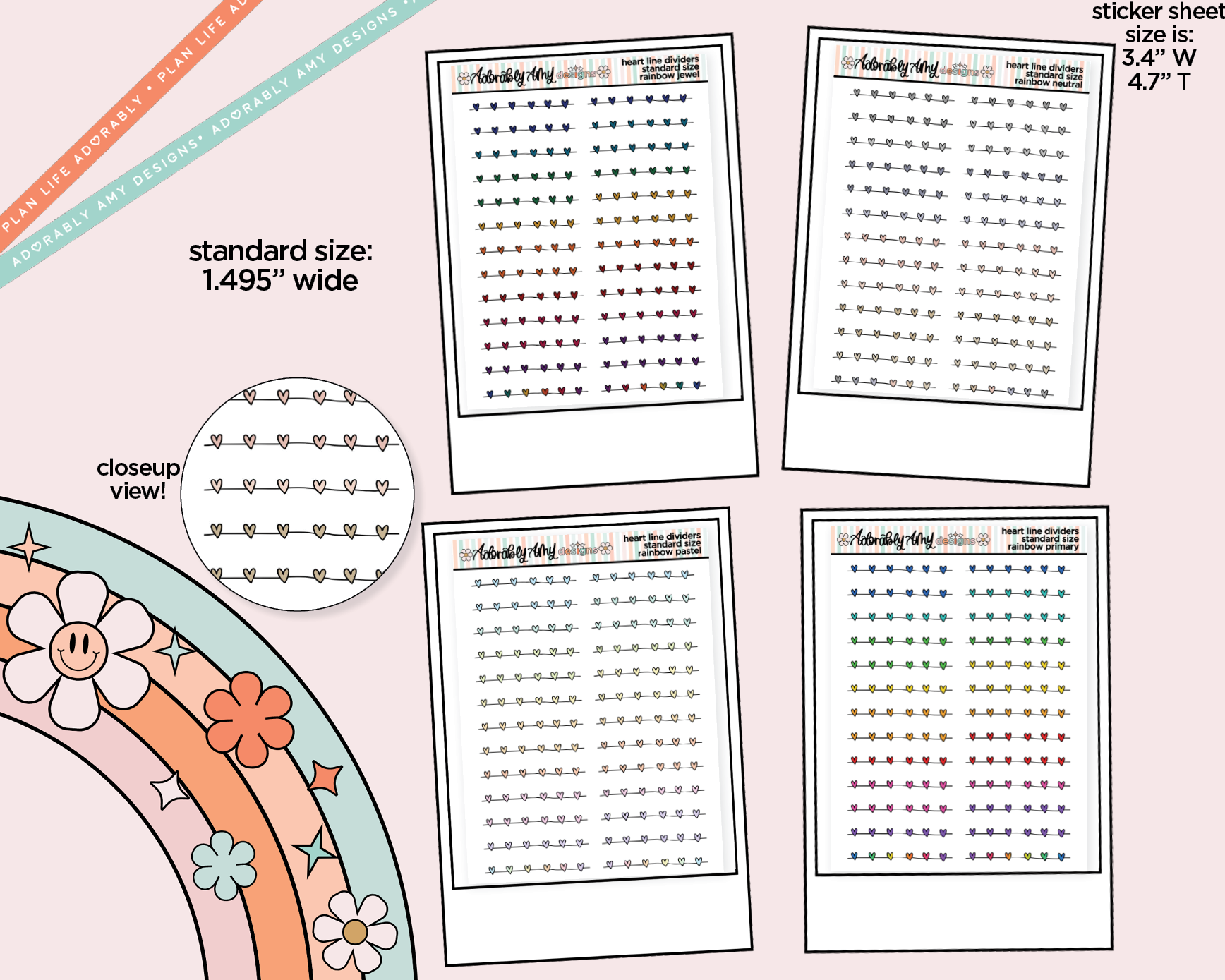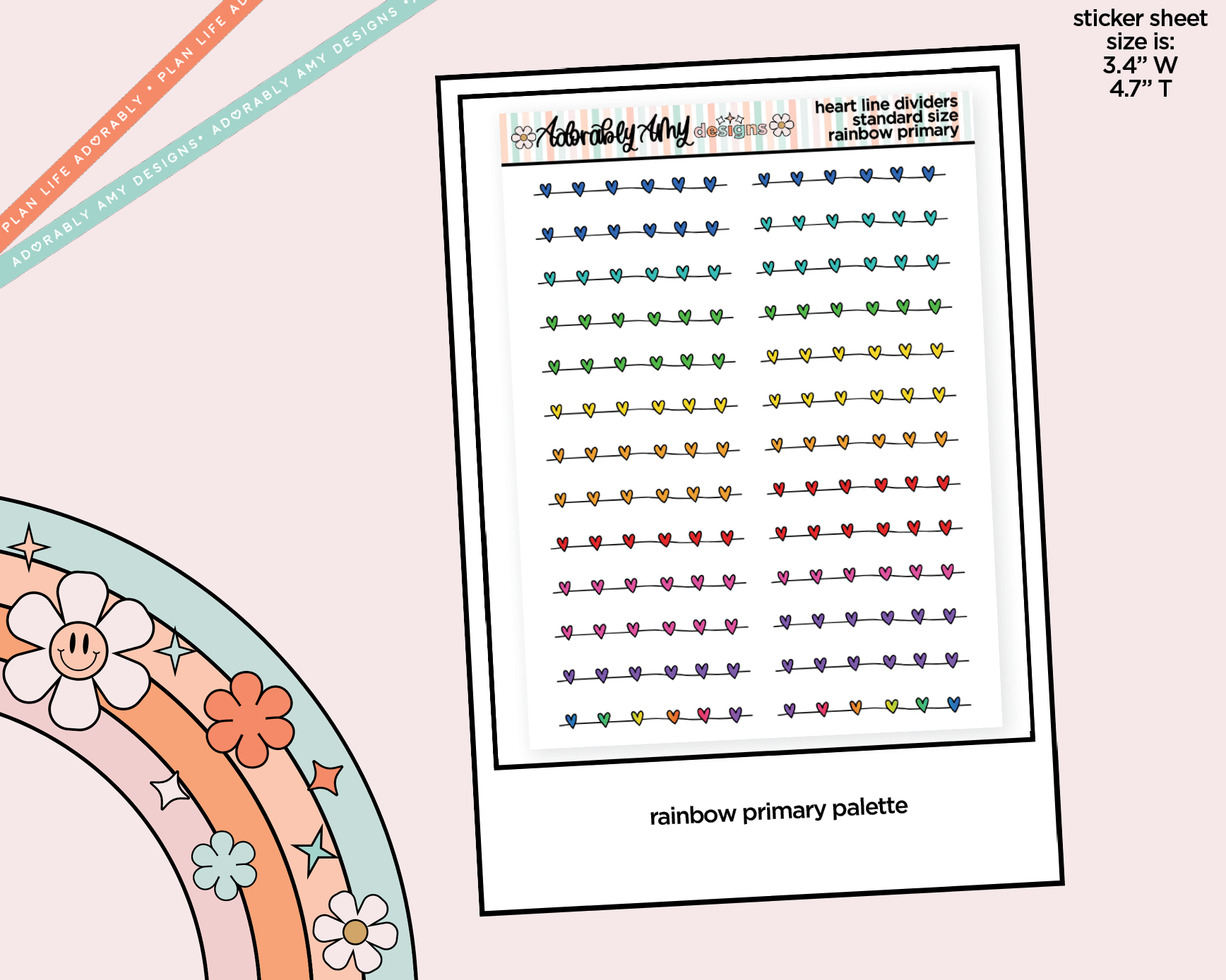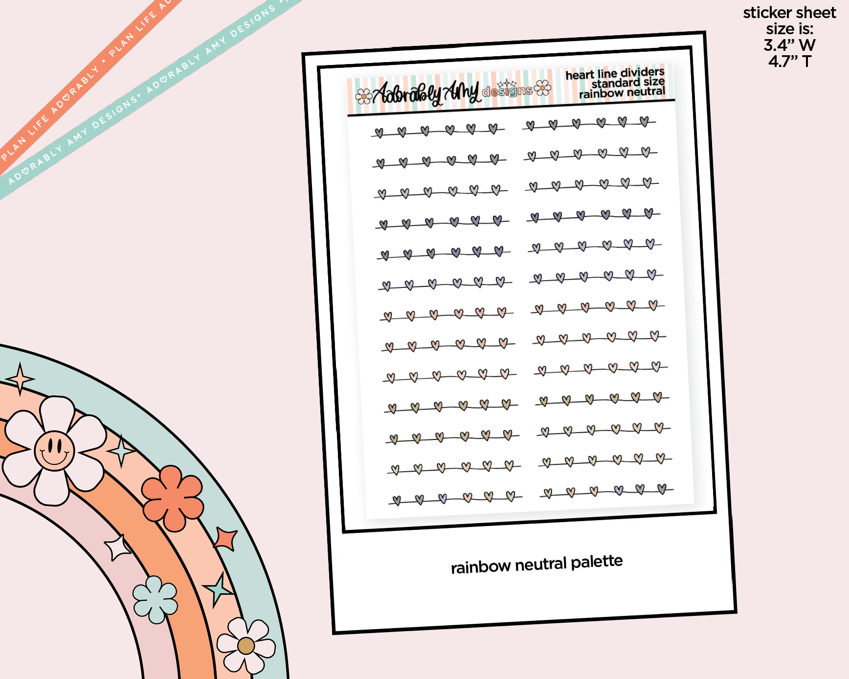 Rainbow Heart Line Dividers Standard Size Stickers for any Planner or Insert