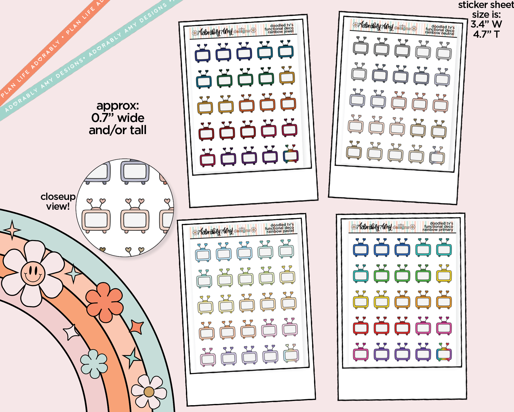 Rainbow Kawaii Televisions Doodled Icon Stickers