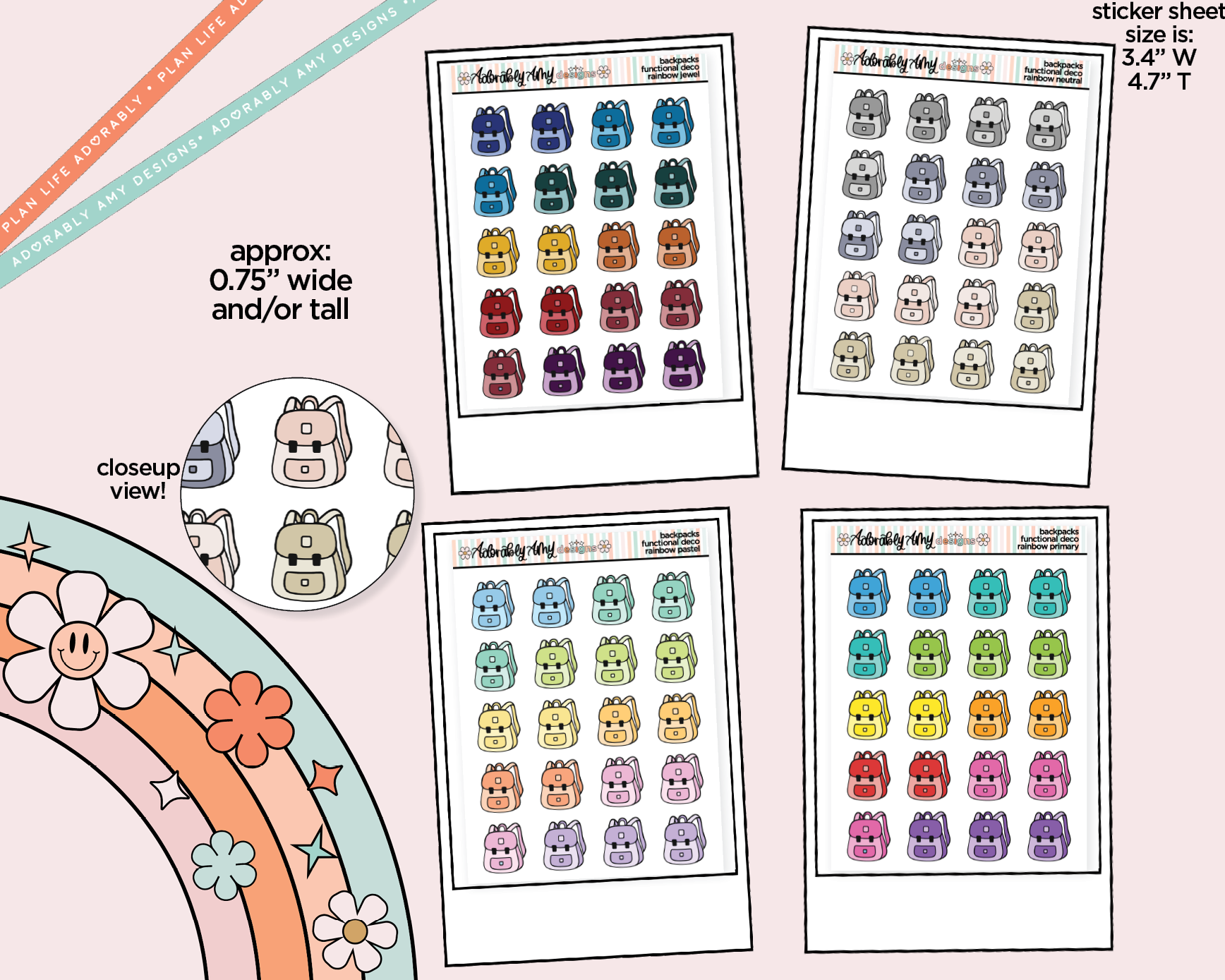 Rainbow School Backpacks Doodled Stickers for any Planner or Insert