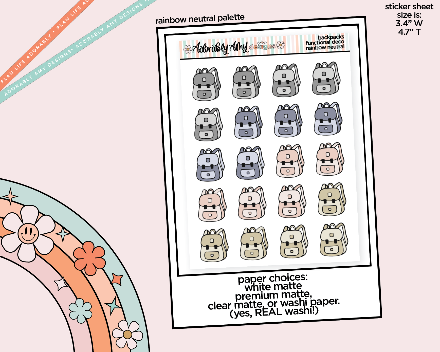 🎒 Rainbow Backpack Sticker Sheets – Multiple Colorways! 🌈
