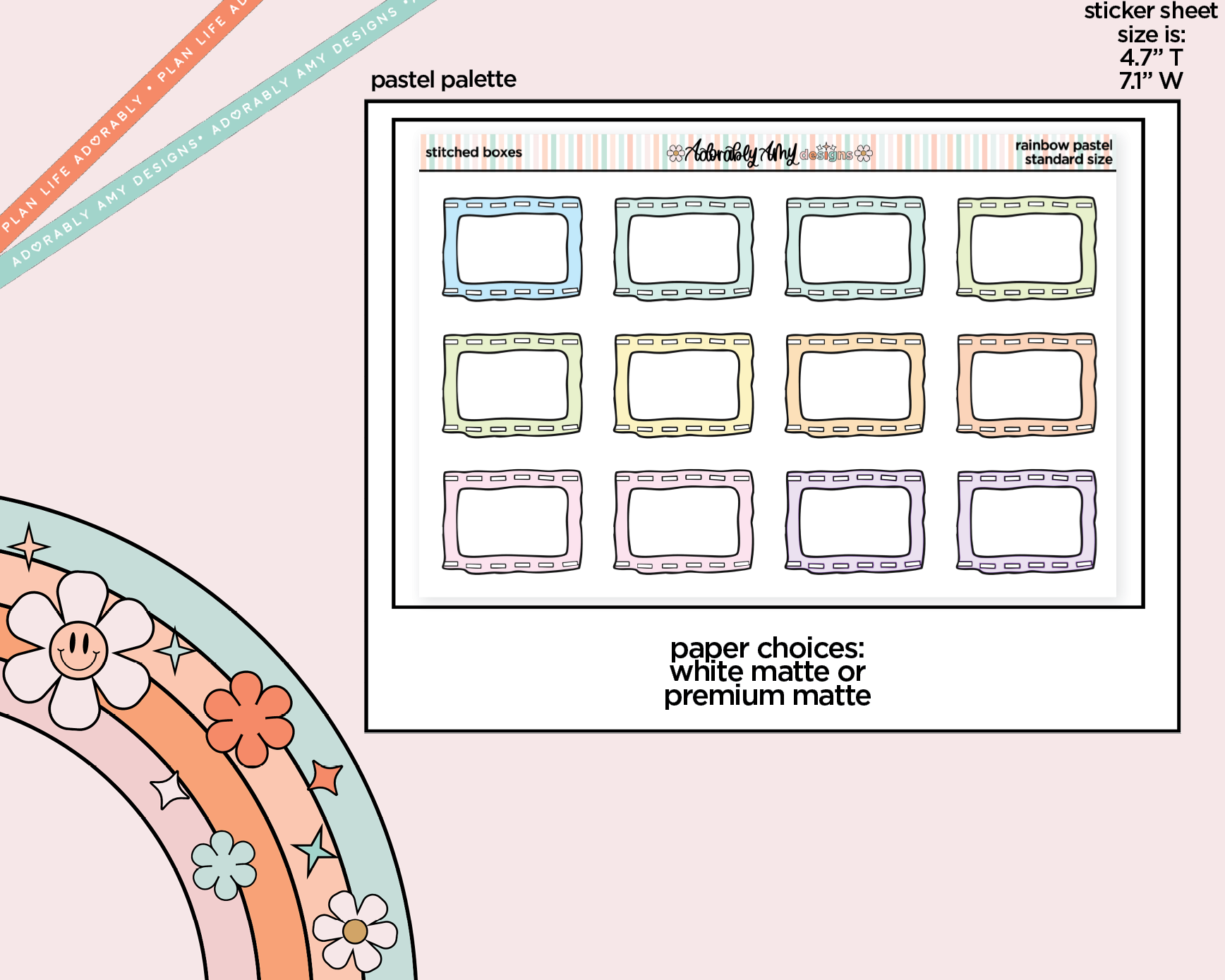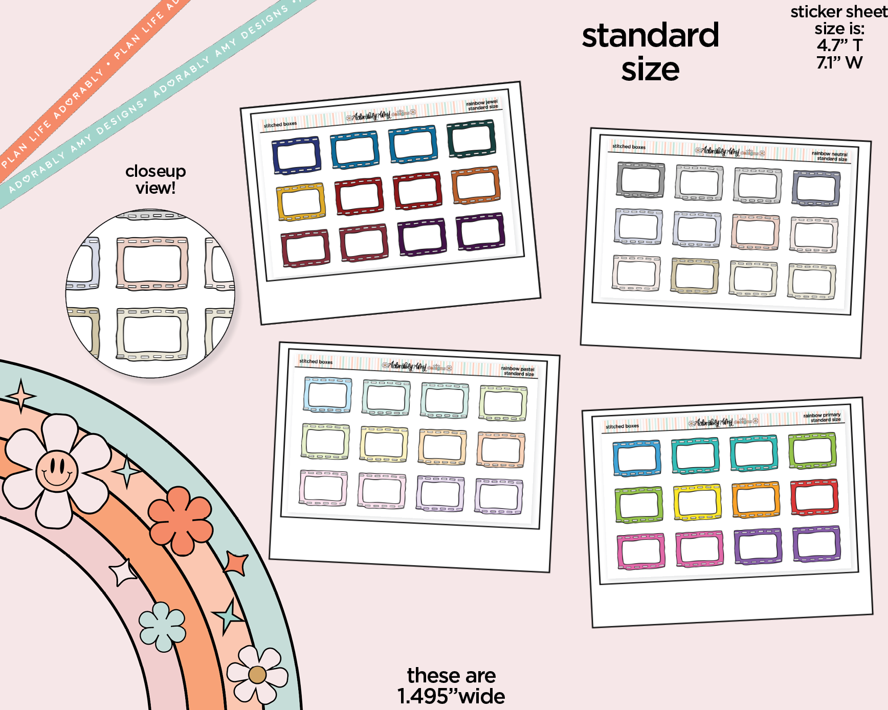 Rainbow Stitched Boxes Standard Stickers for any Standard Size Planner or Insert