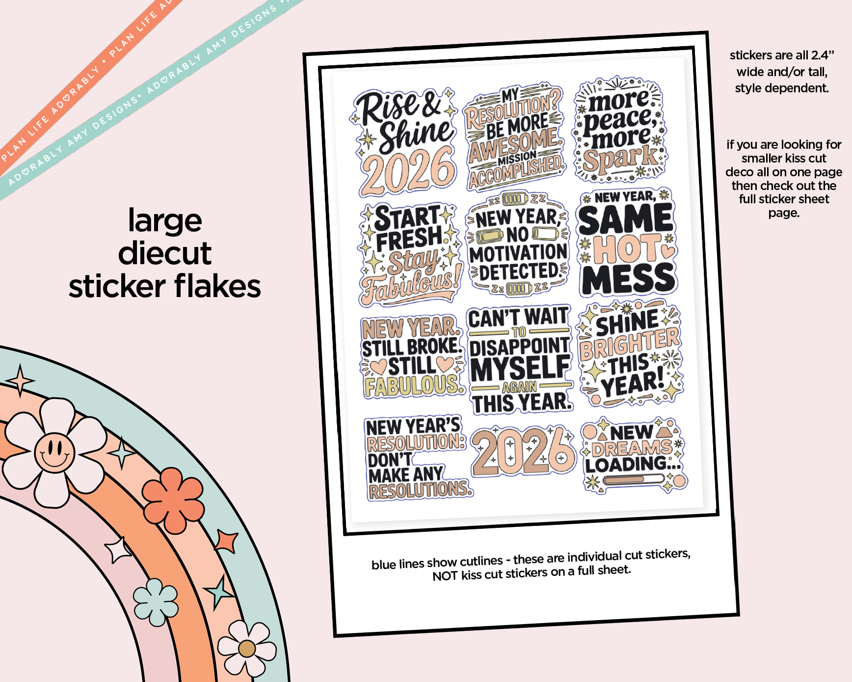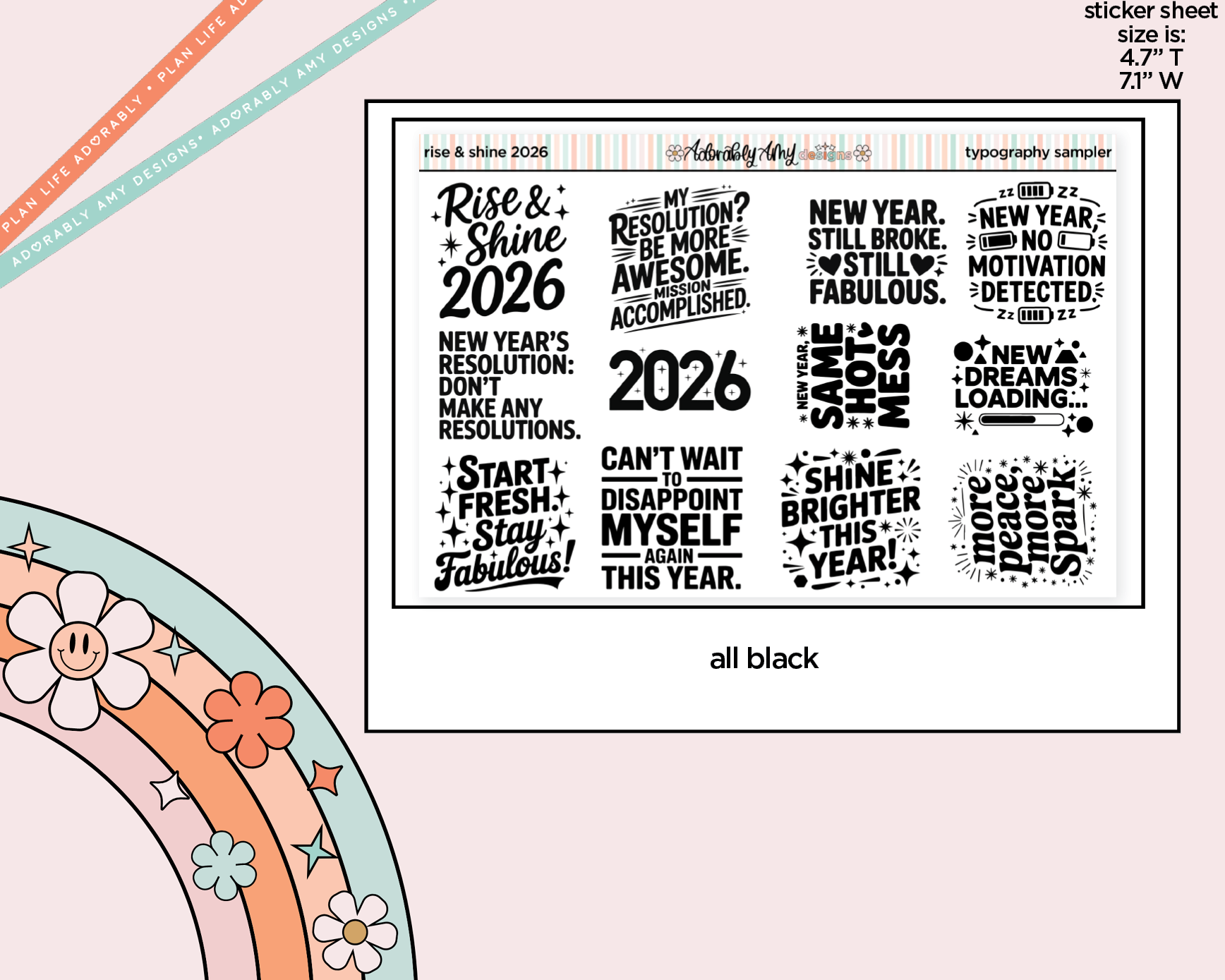 Rise & Shine 2026 New Years Deco Typography Sampler Planner Stickers