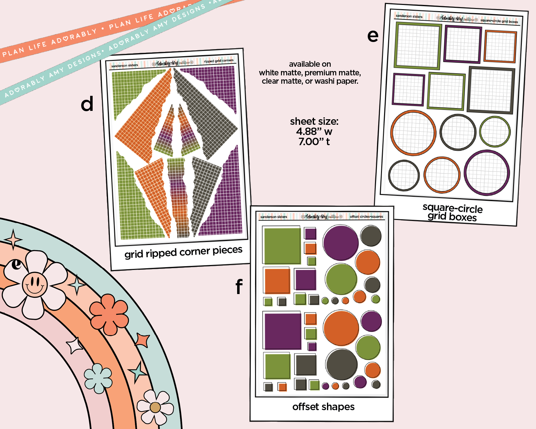 There are four papers available for all these addons. Our normal high quality bright white sticker paper or the super thin and soft Premium Matte Thin paper. This paper is PERFECT for the Hobo Cousin because the paper is so thin and flexible so obviously I recommend that one, though it does have a small upcharge. It is also available on clear matte paper OR super thin Washi Paper, yes REAL washi paper! Washi paper is NOT repositionable once you stick it down all the way!!