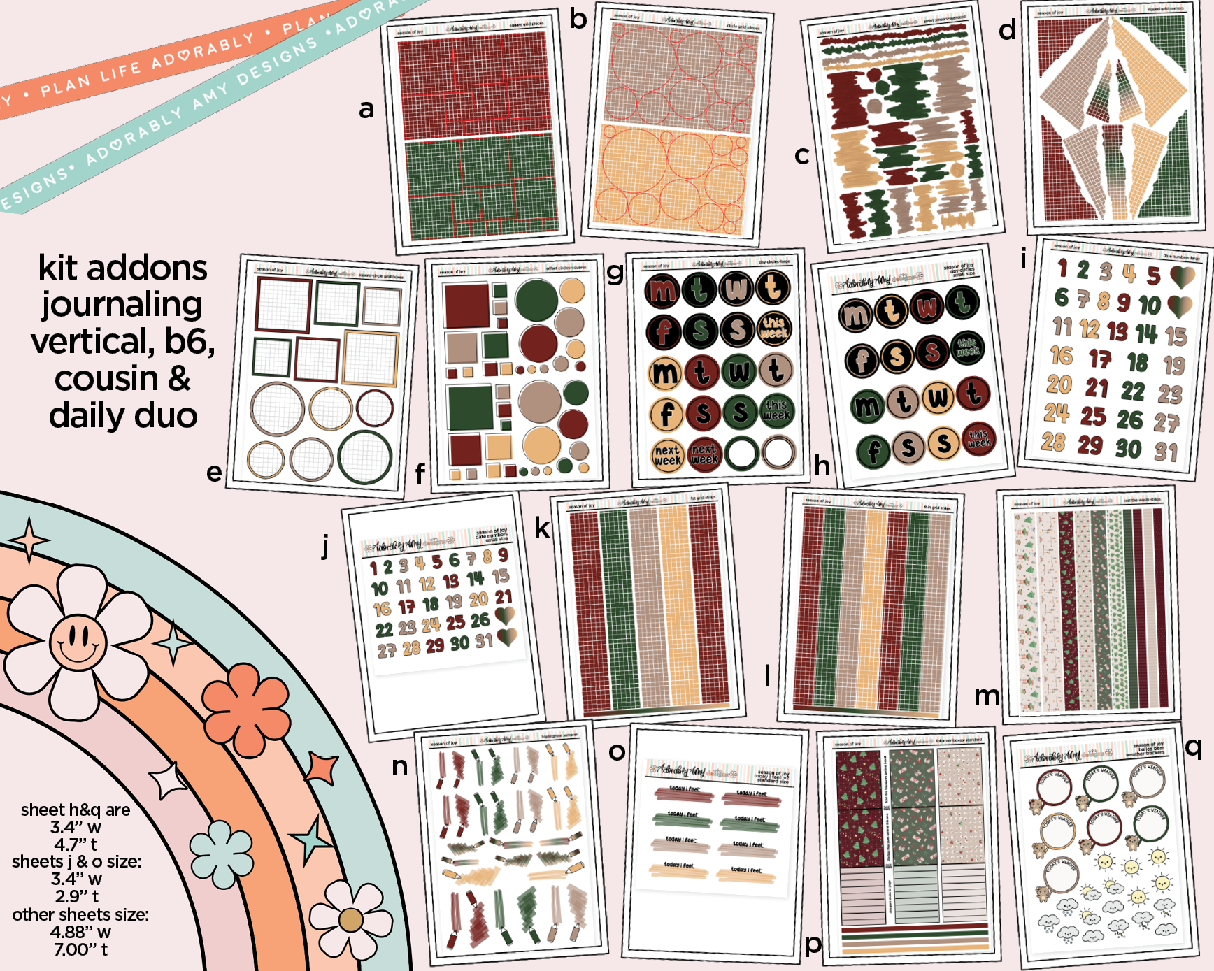 Celebrate the cozy magic of the holidays with the Season of Joy Collection! From twinkling trees to cheerful winter vibes, this festive set brings warmth and whimsy to your planner. Perfect for decking your spreads with classic holiday charm and a touch of sparkle, these designs pair beautifully with your favorite seasonal stickers and accessories.