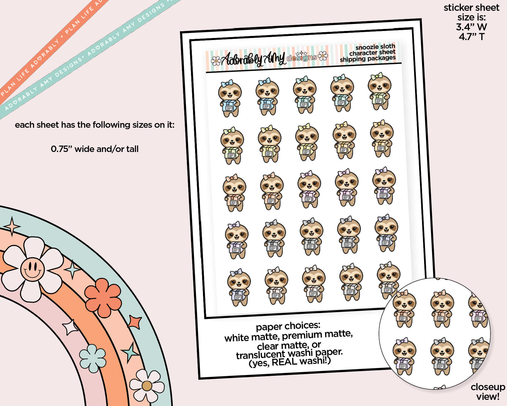 Ship some cuteness into your planner with Snoozie Sloth Shipping Package stickers!