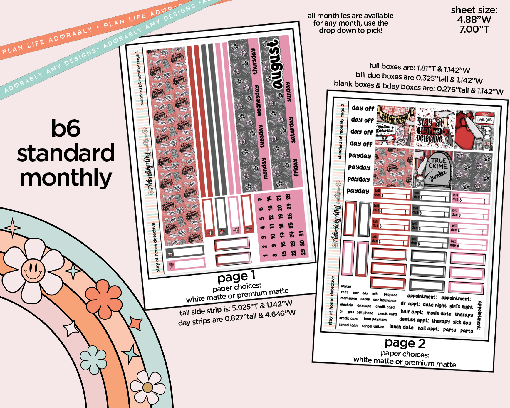 Standard B6 Monthly Pick Your Month Stay at Home Detective Planner Sticker Kit for some B6 Planners