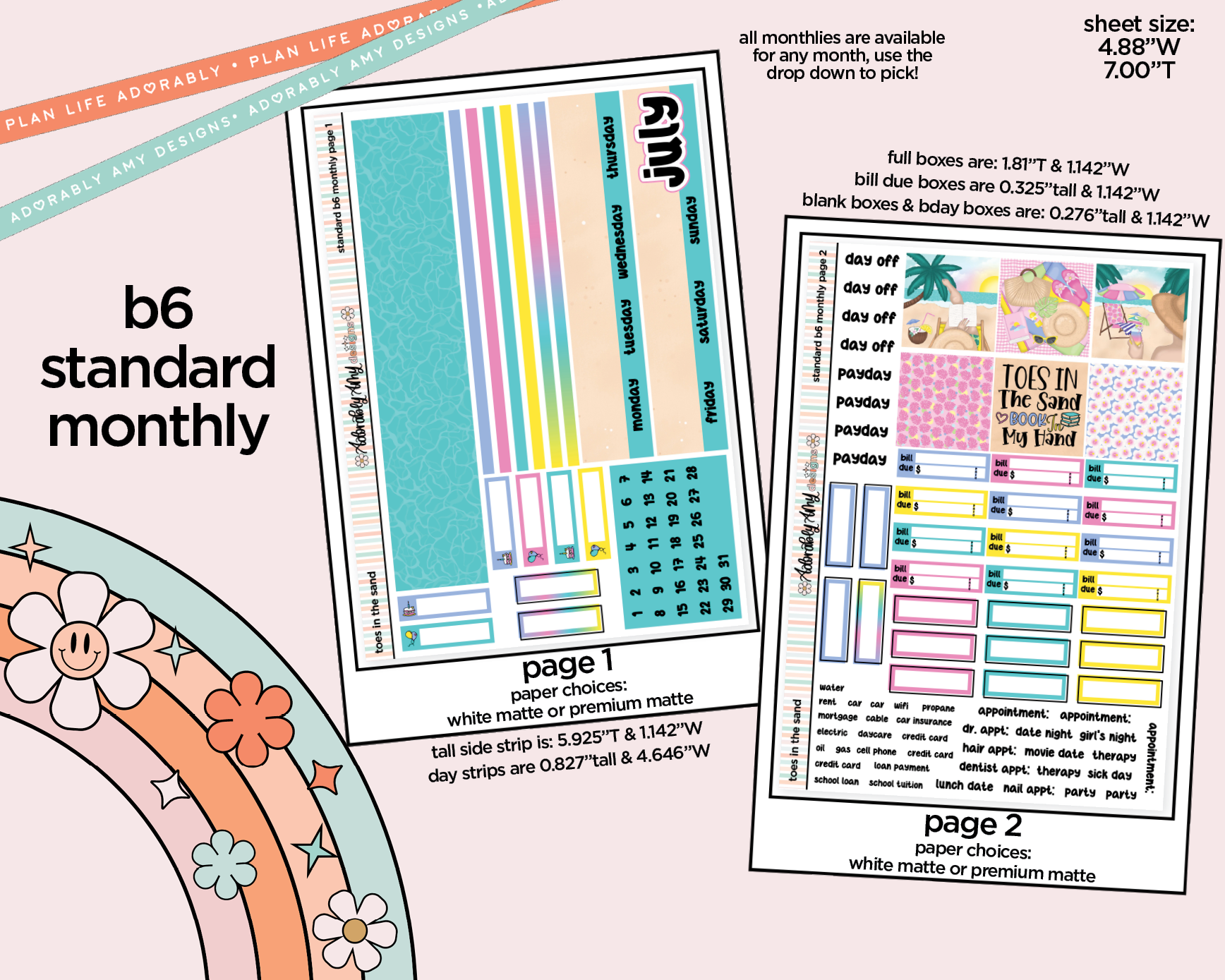 Standard B6 Monthly Pick Your Month Toes in the Sand Book in My Hand Planner Sticker Kit for some B6 Planners